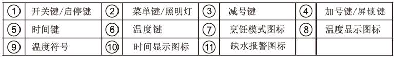 台面高温指示:指示灯亮时表示台面温度高,炉头在使用过程中或关闭后一段时间内,台面炉头工作区内温度很高,此时严禁触摸高温区域。
